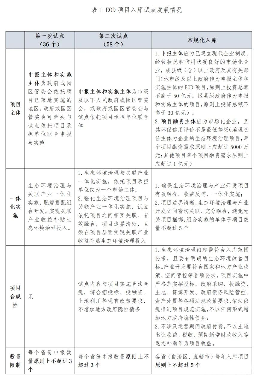 EOD模式由試點轉(zhuǎn)為常規(guī)的項目入庫制,主要有三大變化: