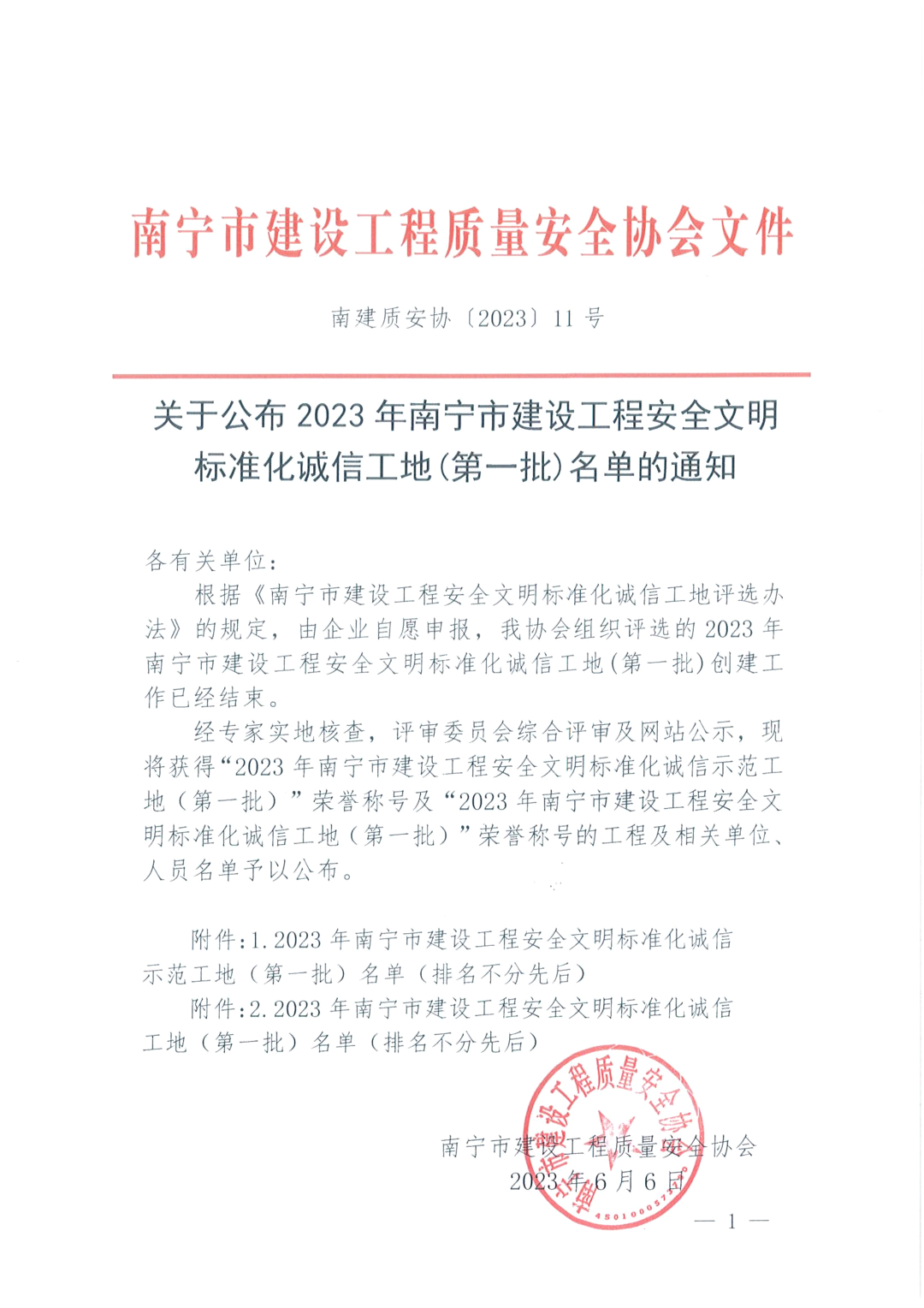 01、2023年南寧市建設工程安全文明標準化誠信示范工地