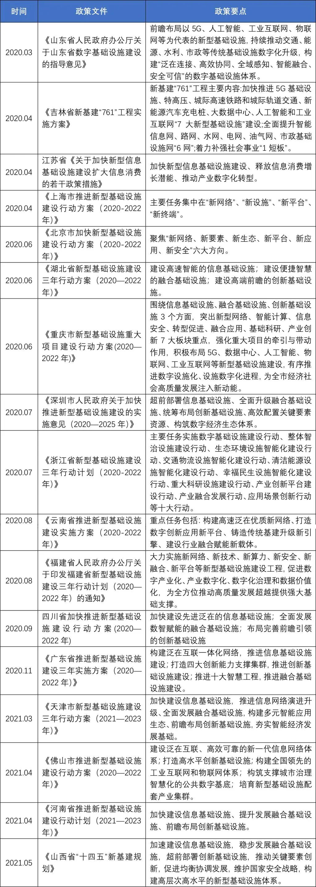 表1:我國(guó)新型基礎(chǔ)設(shè)施相關(guān)政策整理