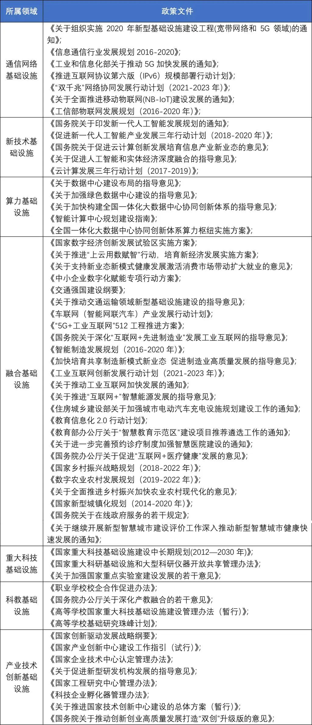 表2:新型基礎(chǔ)設(shè)施各領(lǐng)域涉及到的部分政策整理