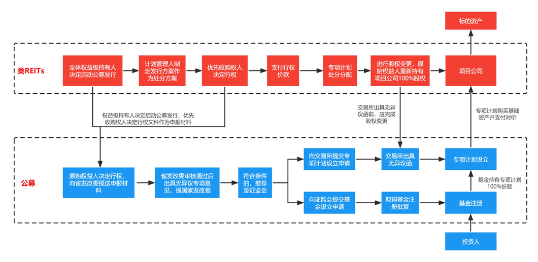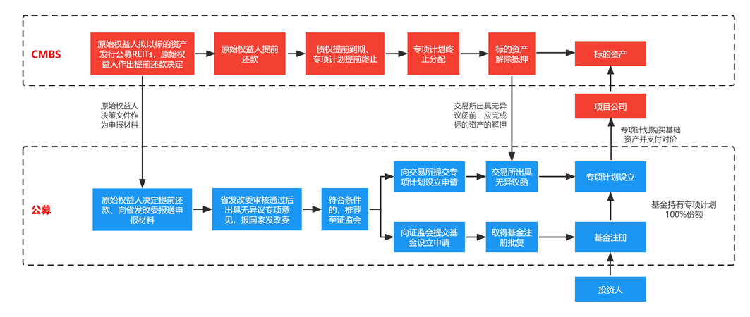 基于我國基礎設施領域不動產(chǎn)投資信托基金(REITs)系通過資產(chǎn)支持證券和項目公司為載體取得基礎設施項目完全所有權或經(jīng)營權利,基于底層資產(chǎn)的互通性,以CMBS/CMBN及類REITs為主要形態(tài)的資產(chǎn)證券化產(chǎn)品亦應被視為Pre-REITs的一種重要形態(tài)。