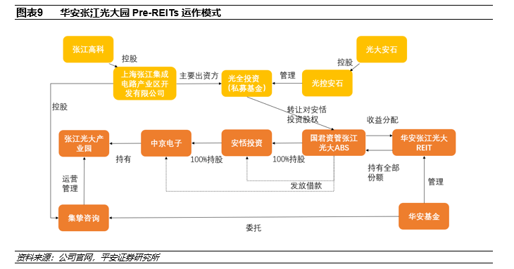 下圖為來自平安證券研究所的華安張江光大園Pre-REITs運作模式: