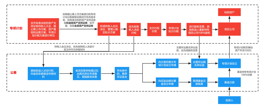 在本類REITs項目中,筆者團隊在項目的結(jié)構(gòu)設計階段即就后續(xù)啟動公募發(fā)行事宜的條件、啟動公募發(fā)行事宜后處分方案的制定、優(yōu)先收購權人的行權路徑等事項與原始權益人、計劃管理人等參與主體進行了充分的溝通,并根據(jù)溝通情況在專項計劃文件中就該等事宜進行了明確約定。因此,在本項目中,原始權益人作為權益級持有人可以直接按照文件約定協(xié)商決定啟動公募發(fā)行事宜,并通過行使優(yōu)先收購權而重新持有基礎設施項目,無需就此召開持有人大會進行審議。