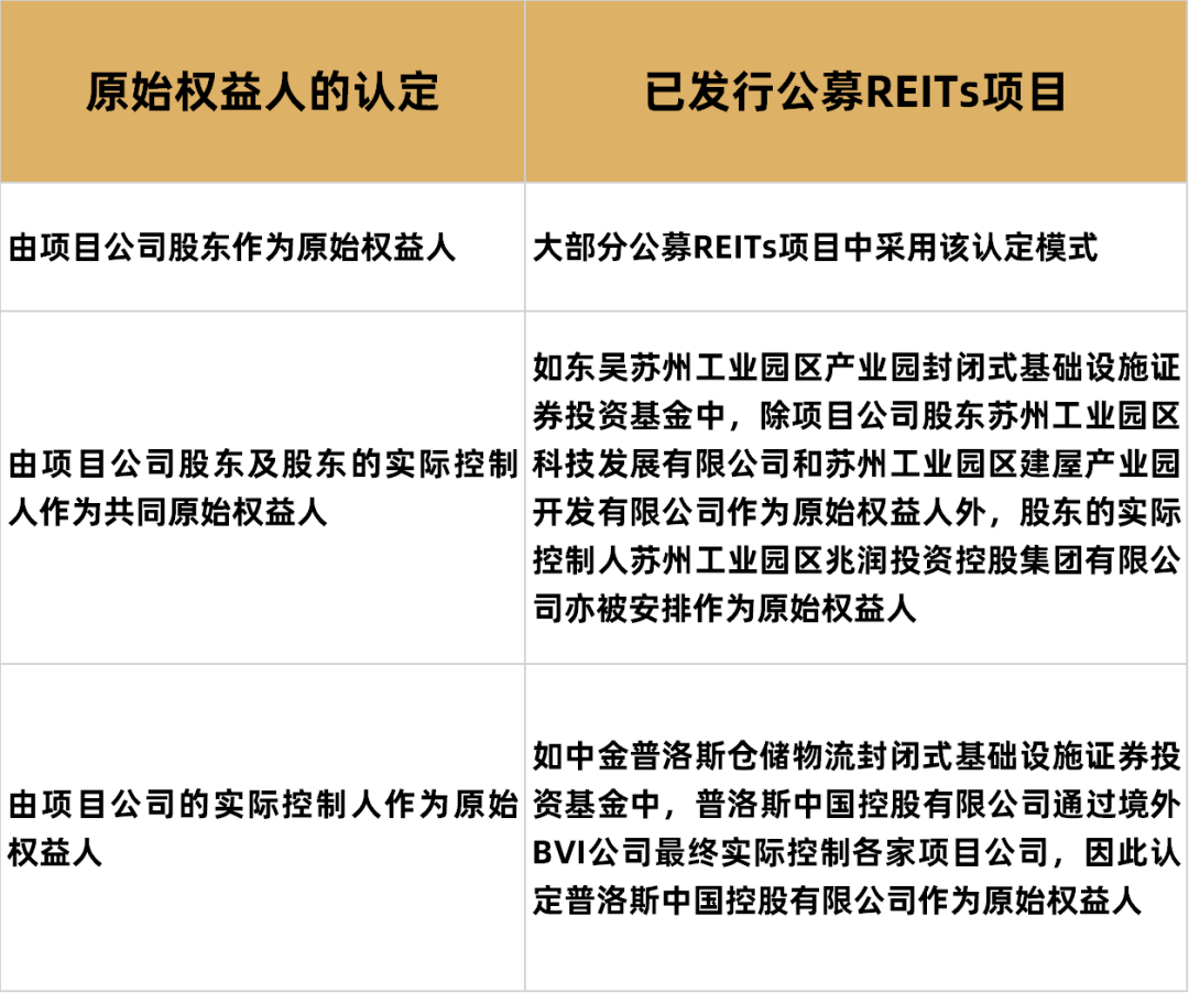 根據(jù)證監(jiān)會發(fā)布的《公開募集基礎設施證券投資基金指引(試行)》第五十條第三款之規(guī)定,原始權益人是指基礎設施基金持有的基礎設施項目的原所有人。實踐中,由于持有基礎設施項目的項目公司股權結(jié)構(gòu)存在一定差異,公募REITs項目中對于原始權益人的認定也區(qū)分幾種不同的情形。經(jīng)統(tǒng)計已發(fā)行公募REITs項目,原始權益人的認定情況包含以下幾種情形: