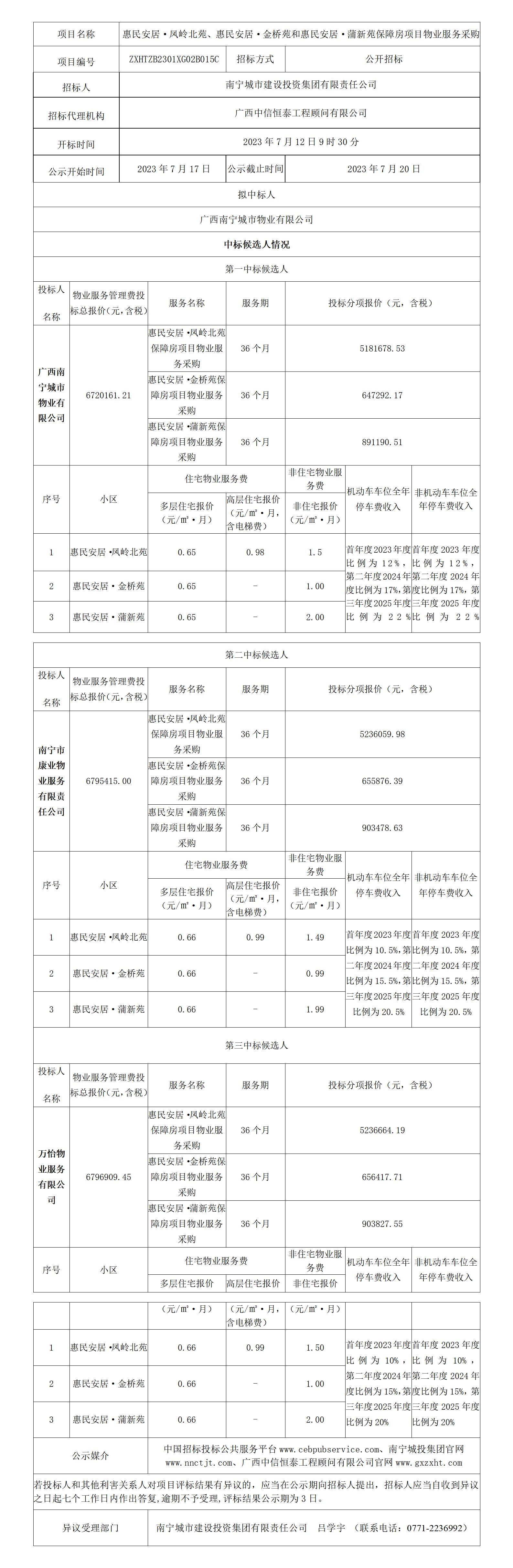 惠民安居·鳳嶺北苑、惠民安居·金橋苑和惠民安居·蒲新苑保障房項目物業(yè)服務(wù)采購中標(biāo)候選人公示