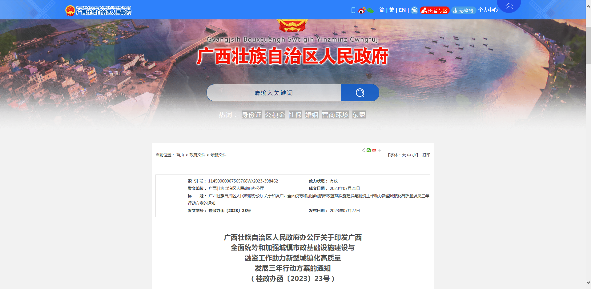 《廣西全面統(tǒng)籌和加強城鎮(zhèn)市政基礎(chǔ)設(shè)施建設(shè)與融資工作助力新型城鎮(zhèn)化高質(zhì)量發(fā)展三年行動方案》已經(jīng)自治區(qū)人民政府同意,現(xiàn)印發(fā)給你們,請認真組織實施。