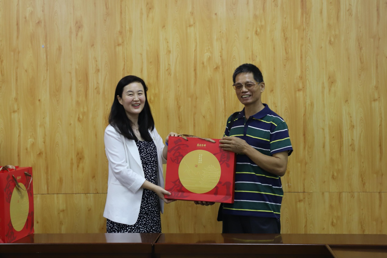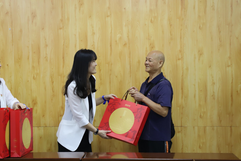 中信恒泰黨支部書記甘江幸、副總經(jīng)理郭佳鑫為老黨員代表送上中秋慰問(wèn)品