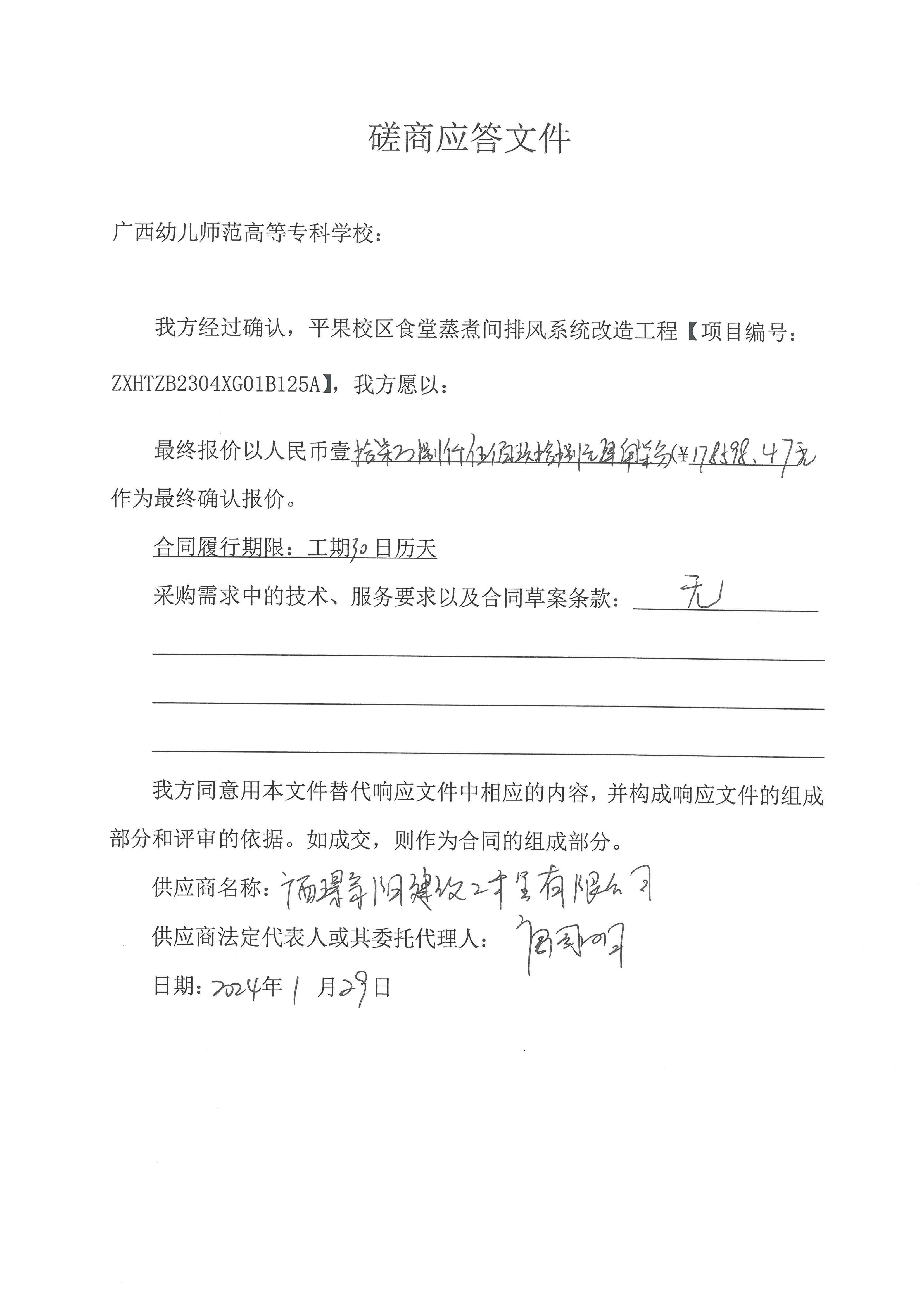 廣西中信恒泰工程顧問有限公司關于平果校區(qū)食堂蒸煮間排風系統(tǒng)改造工程(項目編號:ZXHTZB2304XG01B125A)