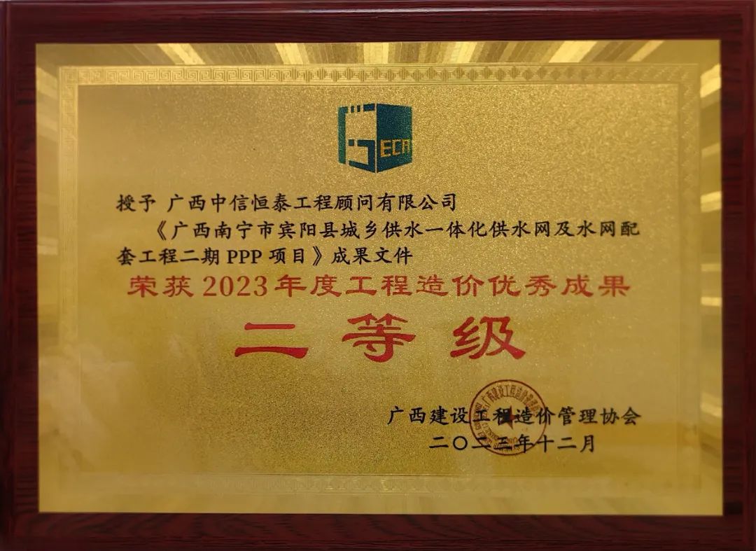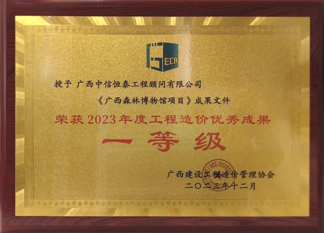 ◎中信恒泰成果文件榮獲2023年度廣西建設(shè)工程優(yōu)秀造價(jià)成果一、二等級