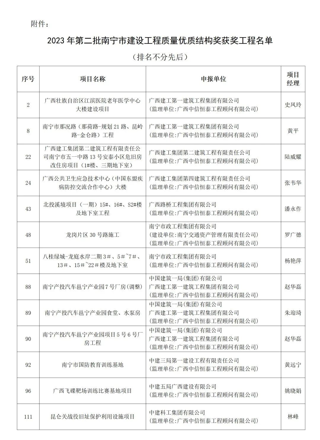 ◎ 中信恒泰13個(gè)項(xiàng)目榮獲2023年第二批南寧市建設(shè)工程質(zhì)量優(yōu)質(zhì)結(jié)構(gòu)獎