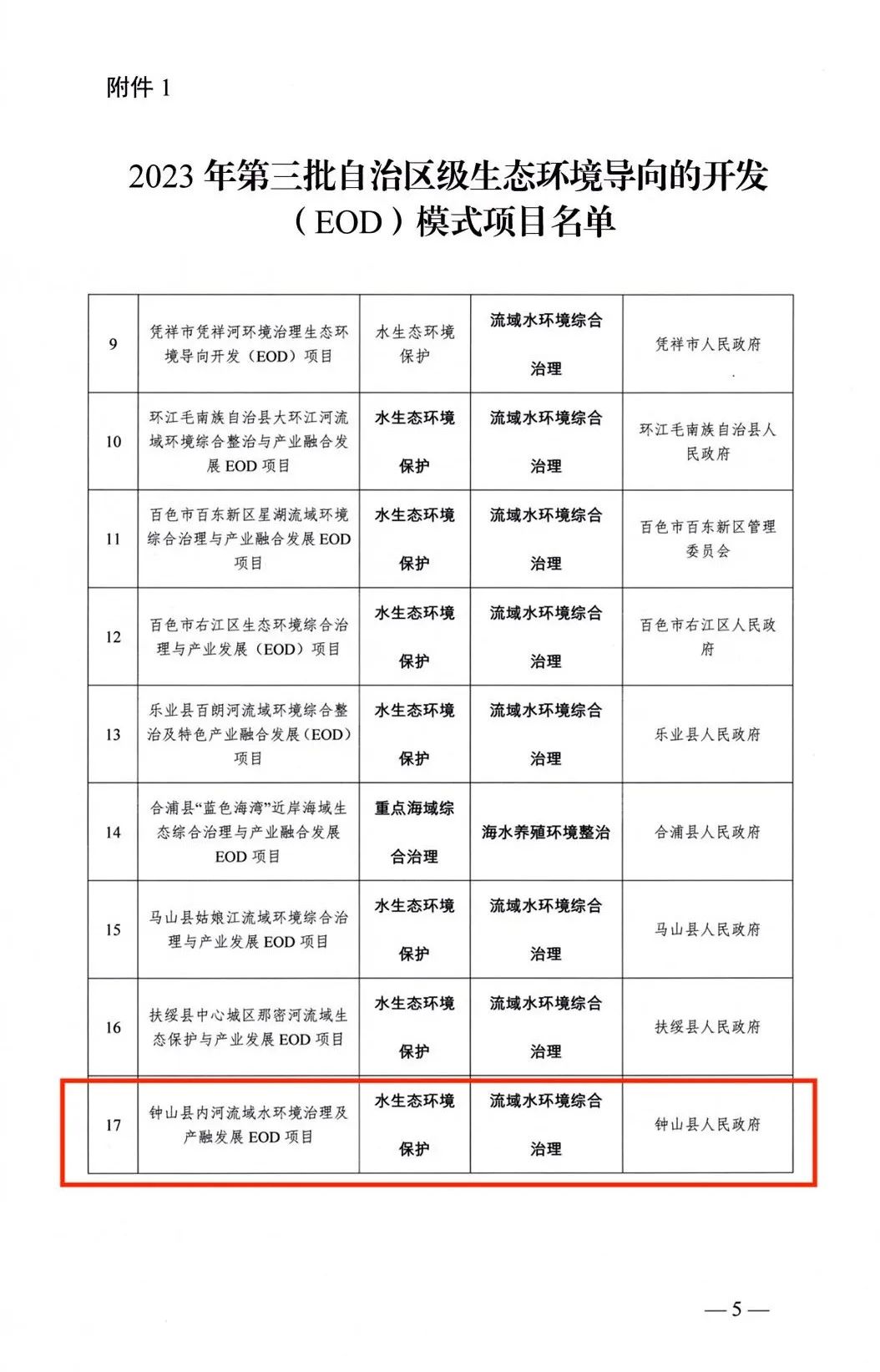 ◎ 中信恒泰助力鐘山縣內(nèi)河流域水環(huán)境治理及產(chǎn)融發(fā)展EOD項(xiàng)目順利入庫