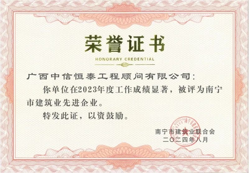 近日,南寧市建筑業(yè)聯(lián)合會(huì)公布了2023年度建筑業(yè)企業(yè)評(píng)先評(píng)優(yōu)評(píng)選結(jié)果,中信恒泰憑借雄厚的綜合實(shí)力和良好的業(yè)界口碑,榮獲“2023年度南寧市建筑業(yè)先進(jìn)企業(yè)”“2023年度南寧市建筑業(yè)誠信企業(yè)”兩項(xiàng)殊榮。