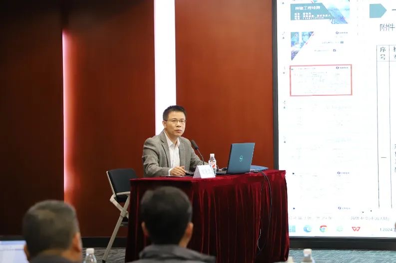 培訓(xùn)中,創(chuàng)新建筑檢測常務(wù)副總經(jīng)理曾憲龍以《房屋工程檢測》為題,詳細(xì)介紹了房建檢測的主要項(xiàng)目和內(nèi)容、檢測流程與關(guān)鍵節(jié)點(diǎn)、常見漏檢項(xiàng)目閉合、必檢項(xiàng)與非必檢項(xiàng)以及組批原則和取樣數(shù)量。他強(qiáng)調(diào)了檢測工作的規(guī)范性和重要性,并分享了如何識別和處理檢測中的關(guān)鍵點(diǎn)和常見疏漏,提升了員工對檢測重要性的認(rèn)識,并指導(dǎo)從業(yè)人員如何在實(shí)際操作中遵循規(guī)范,確保檢測的精確性和有效性。