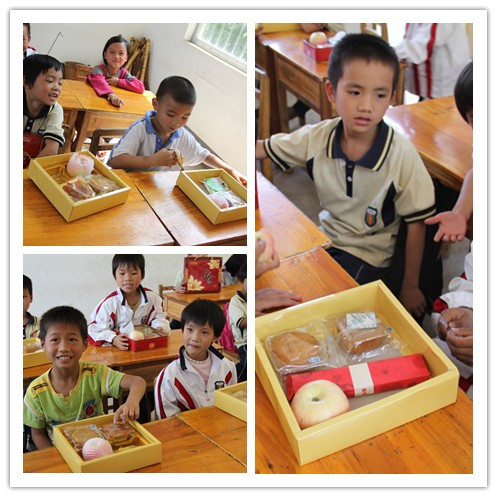 壇昌小學(xué)地處武鳴縣靈馬鎮(zhèn),校園內(nèi)僅建有一棟教學(xué)樓和一個(gè)小操場。我們的愛心車隊(duì)剛進(jìn)入校園,便看到孩子們整齊的排列在操場上向我們揮手微笑。在操場上,我們將月餅、水果一一發(fā)放到留守兒童的手上,摸著他們個(gè)頭矮矮的小腦袋,彼此間的那份友好與感動(dòng)洋溢整個(gè)校園。在活動(dòng)中,我們走進(jìn)孩子們狹小卻干凈的教室,與孩子們互動(dòng)談心,詢問他們?nèi)粘5膶W(xué)習(xí)生活情況。一個(gè)微笑、一次拉手讓我們的互動(dòng)充滿歡樂;一句問候,一個(gè)擁抱,也都讓我們的公益活動(dòng)更加地有意義。
