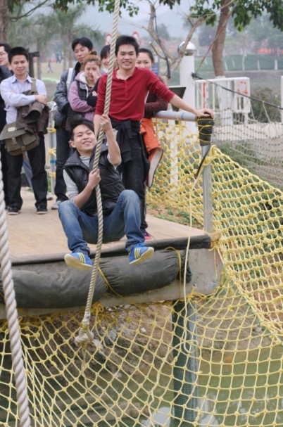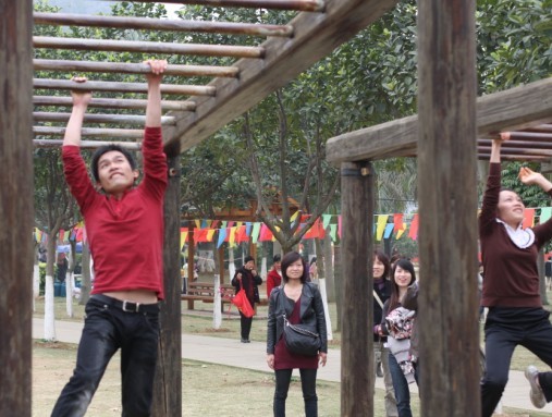 美味的午餐過后,為了能讓大家在平時忙碌的工作生活中心情能得到一次完全的放松,于是組織了一系列的競技游戲。領(lǐng)導(dǎo)將所有人員分成四個隊,大家都興高采烈地參與到了游戲當(dāng)中。游戲開始后,隊員們你追我趕,競相追逐。三點兩點之間,已順利到達終點。