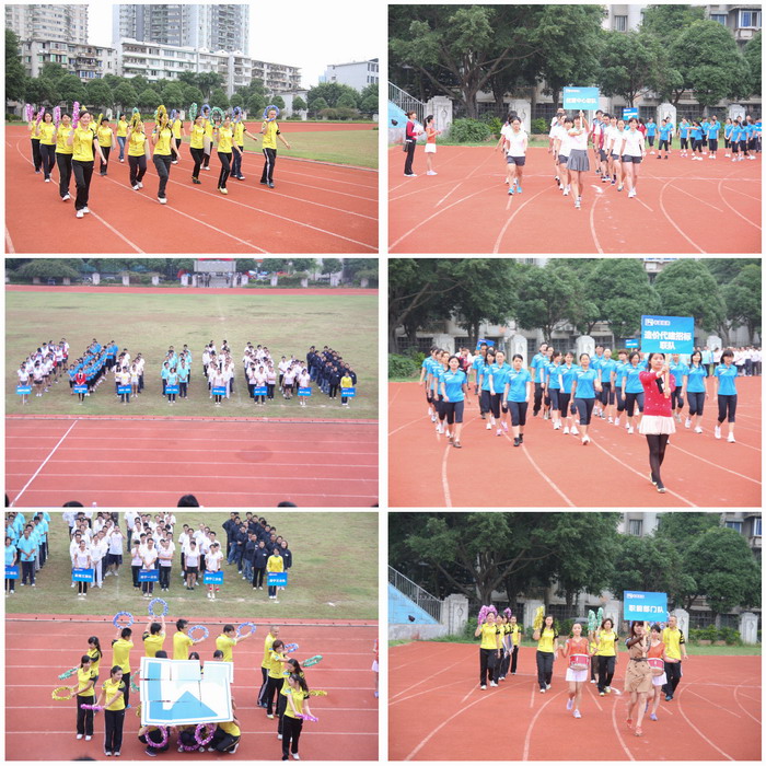 運(yùn)動會首先進(jìn)行的是精彩的入場儀式。十個參賽代表隊(duì)都分別統(tǒng)一著裝,依次入場。首先入場的是經(jīng)營中心聯(lián)隊(duì),一襲白色上衣整齊跨步,精神十足;造價(jià)、代建、招標(biāo)聯(lián)隊(duì)以亮麗的藍(lán)色運(yùn)動裝精神抖擻的走過賽場,活力與自信在他們身上表現(xiàn)得淋漓盡致,并以此奪得了團(tuán)體精神文明獎;緊接著監(jiān)理一部、二部、三部以統(tǒng)一著裝高喊口號,整齊劃一的走過;南寧一分和南寧二分代表隊(duì)以白色上裝依次自信而精神飽滿的邁過;南寧三分則身穿深藍(lán)色的工作服,成為全場的著裝亮點(diǎn);最后出場的是職能部門代表隊(duì),每人手舉彩圈形成一條亮麗的彩虹,身著一抹亮黃,踩著隊(duì)伍鼓手發(fā)出的整齊鼓點(diǎn),自信滿滿的入場,經(jīng)過主席臺時(shí),隊(duì)伍拼出一張華藍(lán)企業(yè)LOGO,引得場上陣陣喝彩。