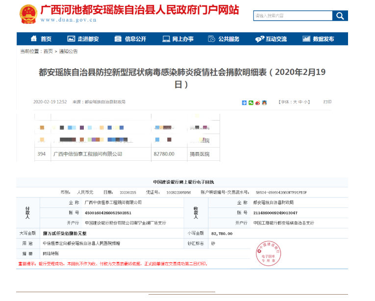 為抗擊疫情盡一份綿薄之力,中信恒泰工會(huì)向公司全體員工發(fā)出對(duì)都安人民醫(yī)院的募捐倡議,呼吁中信恒泰人各盡己能。此次愛心募捐活動(dòng)一發(fā)出,就得到了中信恒泰全體員工的積極響應(yīng),員工們紛紛發(fā)揚(yáng)“一方有難、八方支援”的精神踴躍捐款。在短短的兩天時(shí)間里,公司就收到了來自總公司、各事業(yè)中心及分公司員工的捐款共計(jì)82780元。目前,公司籌得的善款現(xiàn)已全部捐至都安人民醫(yī)院,支援當(dāng)?shù)氐囊咔榉揽亍?/SPAN>