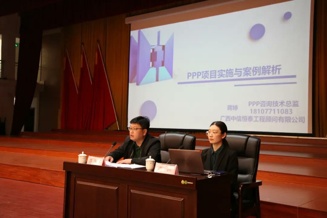 專題講解環(huán)節(jié),廣西中信恒泰公司PPP咨詢中心經(jīng)理陸暉和廣西中信恒泰公司PPP咨詢技術(shù)總監(jiān)蔣婷,分別為與會人員帶來投融資模式的基本知識與策劃、PPP的基本知識與策劃、新投融資模式的基本操作流程及相關(guān)案例(新投融資相關(guān)政策解讀、項(xiàng)目投資實(shí)施經(jīng)驗(yàn)分享)、PPP模式的基本操作流程及相關(guān)案例(PPP基本概念詳解、相關(guān)政策解讀、PPP項(xiàng)目實(shí)施經(jīng)驗(yàn)分享)等內(nèi)容。