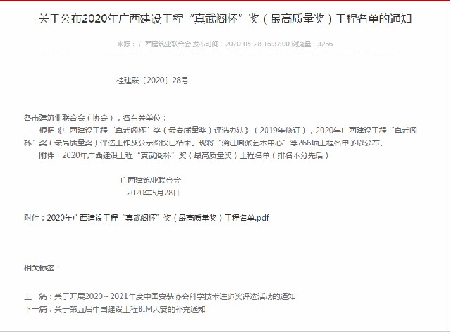 近日,廣西建筑業(yè)聯(lián)合會公布了2020年廣西建設(shè)工程“真武閣杯”獎(最高質(zhì)量獎)入選工程名單,由廣西中信恒泰工程顧問有限公司負(fù)責(zé)監(jiān)理的9個工程咨詢項(xiàng)目同時獲獎,再一次彰顯了廣西中信恒泰工程顧問有限公司在工程咨詢行業(yè)的強(qiáng)大實(shí)力。