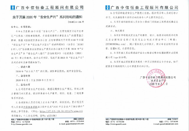 為貫徹落實(shí)習(xí)近平總書記“從根本上消除事故隱患,有效遏制重特大事故發(fā)生”的重要指示精神,中信恒泰6月份開展了以“消除事故隱患,筑牢安全防線”為主題的2020年“安全生產(chǎn)月”系列活動(dòng)。
