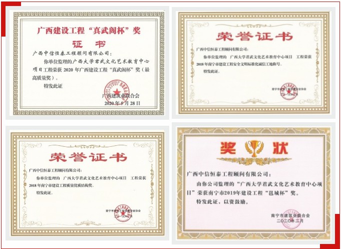 項目先后榮獲了2018年南寧市建設(shè)工程安全文明標(biāo)準(zhǔn)化誠信工地、2018年南寧市建設(shè)工程質(zhì)量優(yōu)質(zhì)結(jié)構(gòu)獎、南寧市2019年建設(shè)工程“邕城杯”獎和2020年廣西建設(shè)工程“真武閣杯”獎(最高質(zhì)量獎)等多項榮譽稱號。