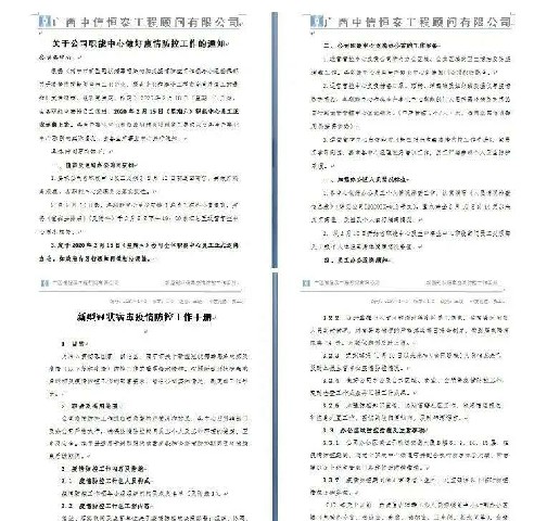 自疫情防控狙擊戰(zhàn)打響以來,廣西中信恒泰工程顧問有限公司堅(jiān)決貫徹總書記關(guān)于疫情防控工作的重要指示、批示精神,積極響應(yīng)自治區(qū)黨委、政府及住建廳號(hào)召,把疫情防控工作作為當(dāng)前最重要的工作來抓,快速響應(yīng)、扎實(shí)工作,為堅(jiān)決打贏疫情防控狙擊戰(zhàn)貢獻(xiàn)力量。