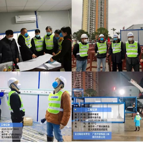 全過程咨詢項(xiàng)目部晝夜交替,輪班作戰(zhàn),現(xiàn)場巡查落實(shí)到人、到天、到時(shí)間段,時(shí)刻緊盯現(xiàn)場,在保安全、保質(zhì)量的基礎(chǔ)上,確保項(xiàng)目進(jìn)度,確保高質(zhì)量、高標(biāo)準(zhǔn)完成建設(shè)任務(wù)。2月5日,廣西“小湯山醫(yī)院”已初見雛形,臨時(shí)病區(qū)負(fù)壓隔離病房已全部完成吊裝,病房內(nèi)部裝修工作有條不紊。