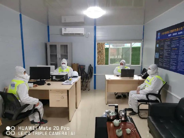 項(xiàng)目工程現(xiàn)場人員密集,人口流動(dòng)性強(qiáng),必須嚴(yán)格保障一線人員的安全,確保工程項(xiàng)目順利進(jìn)展。中信恒泰一線人員在開展工作的同時(shí)加強(qiáng)自我防護(hù)意識(shí),嚴(yán)格按照規(guī)范要求佩戴防疫用品、穿防護(hù)服、實(shí)施分餐制,不斷學(xué)習(xí)疫情防護(hù)知識(shí)。后勤組每天都在辦公區(qū)域進(jìn)行消毒處理,最大程度的避免了感染的風(fēng)險(xiǎn)。