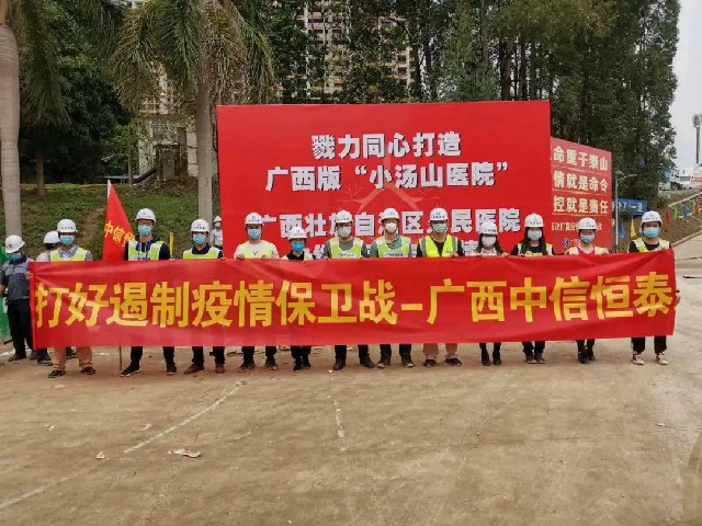 1月31日,中信恒泰積極響應(yīng)自治區(qū)住建廳號(hào)召,主動(dòng)參與廣西“小湯山醫(yī)院”建設(shè),公司技術(shù)骨干舍小家顧大家,紛紛請纓加入抗擊疫情的戰(zhàn)役中。在董事長陸霖的領(lǐng)導(dǎo)下,迅速組建了一支全過程工程咨詢精干管理團(tuán)隊(duì)投入一線。作為項(xiàng)目的全過程工程咨詢單位,與設(shè)計(jì)單位、施工單位等參建各方日夜兼程奮戰(zhàn)一線,近百臺(tái)大型機(jī)械設(shè)備、車輛進(jìn)駐施工現(xiàn)場,24小時(shí)不間斷施工,全力推進(jìn)項(xiàng)目建設(shè)。