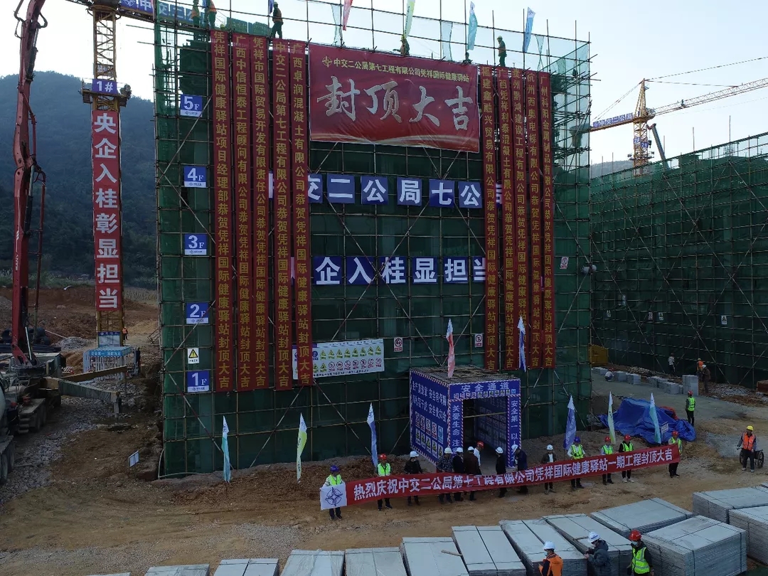 為嚴格落實管控措施、減少疫情傳播風險,作為外防輸入第一防線的憑祥市,按照“三區(qū)兩通道”要求,以“平戰(zhàn)結合”為原則,正緊鑼密鼓、開足馬力,全速推進國際健康驛站項目建設。近日,經過數日的晝夜奮戰(zhàn),中信恒泰擔任全過程工程咨詢服務單位的憑祥國際健康驛站完成主體結構封頂。
