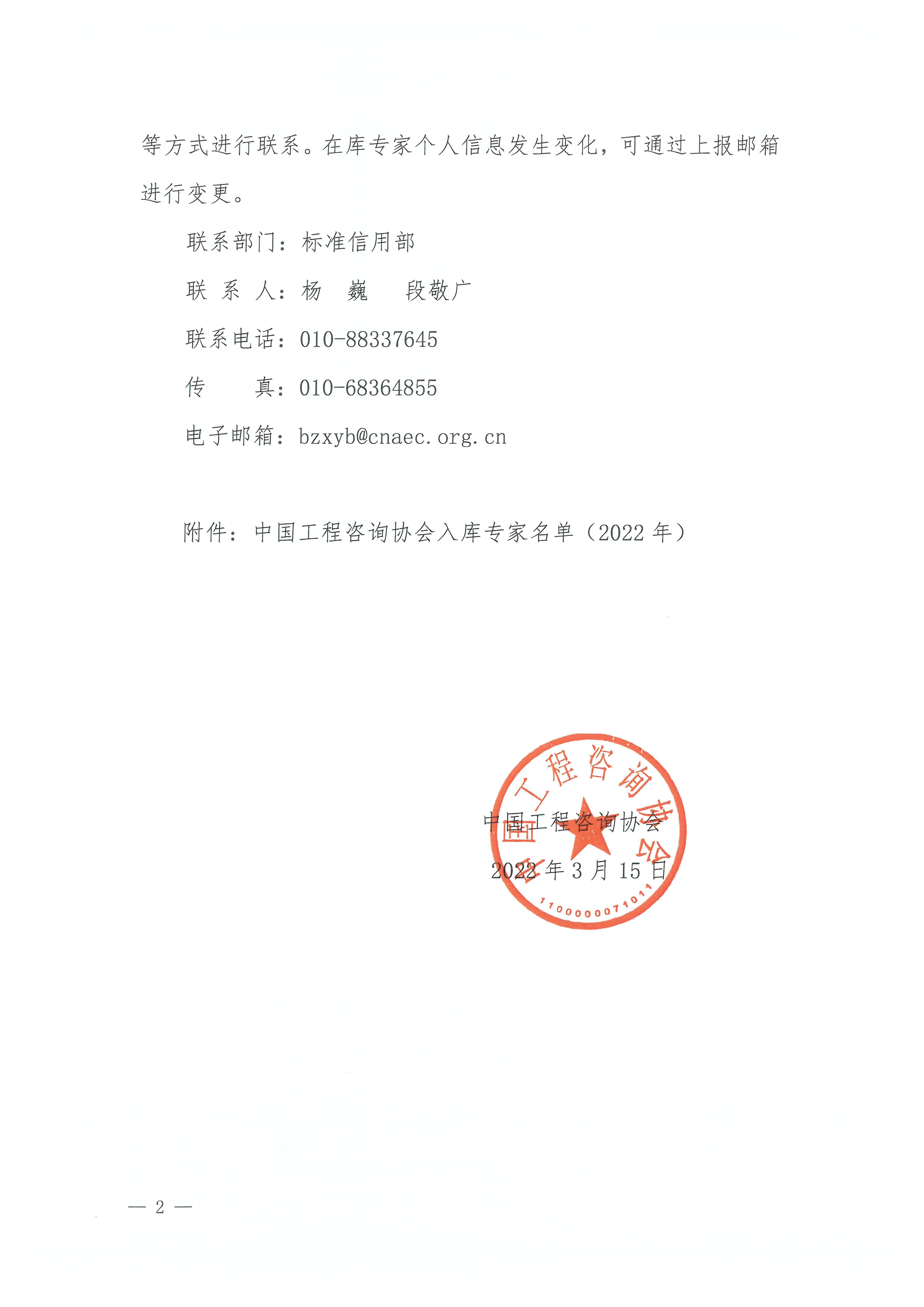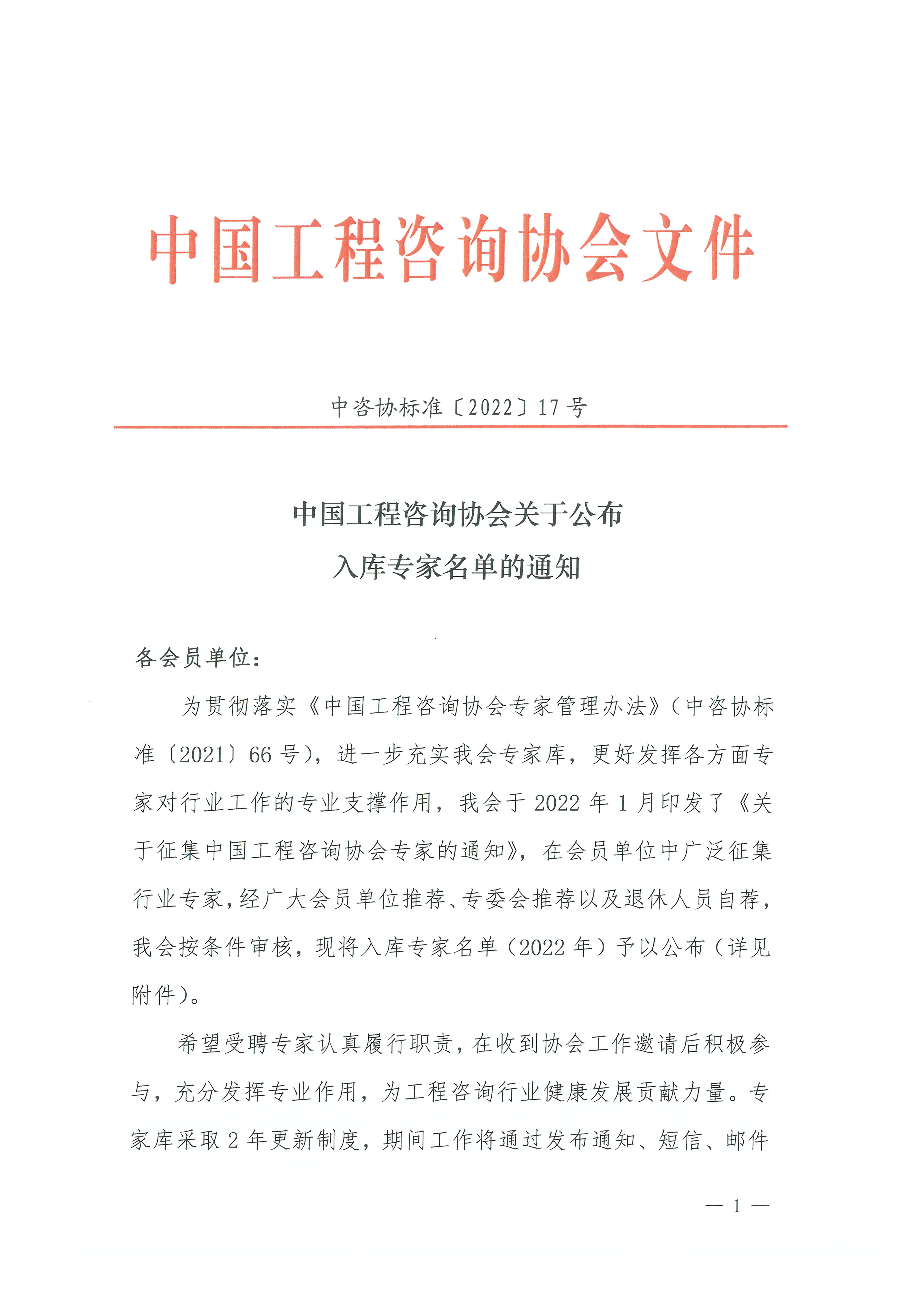 中國(guó)工程咨詢協(xié)會(huì)關(guān)于公布入庫(kù)專家名單的通知
