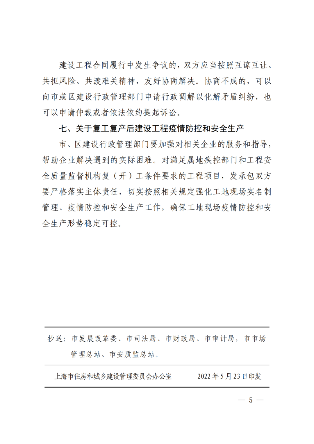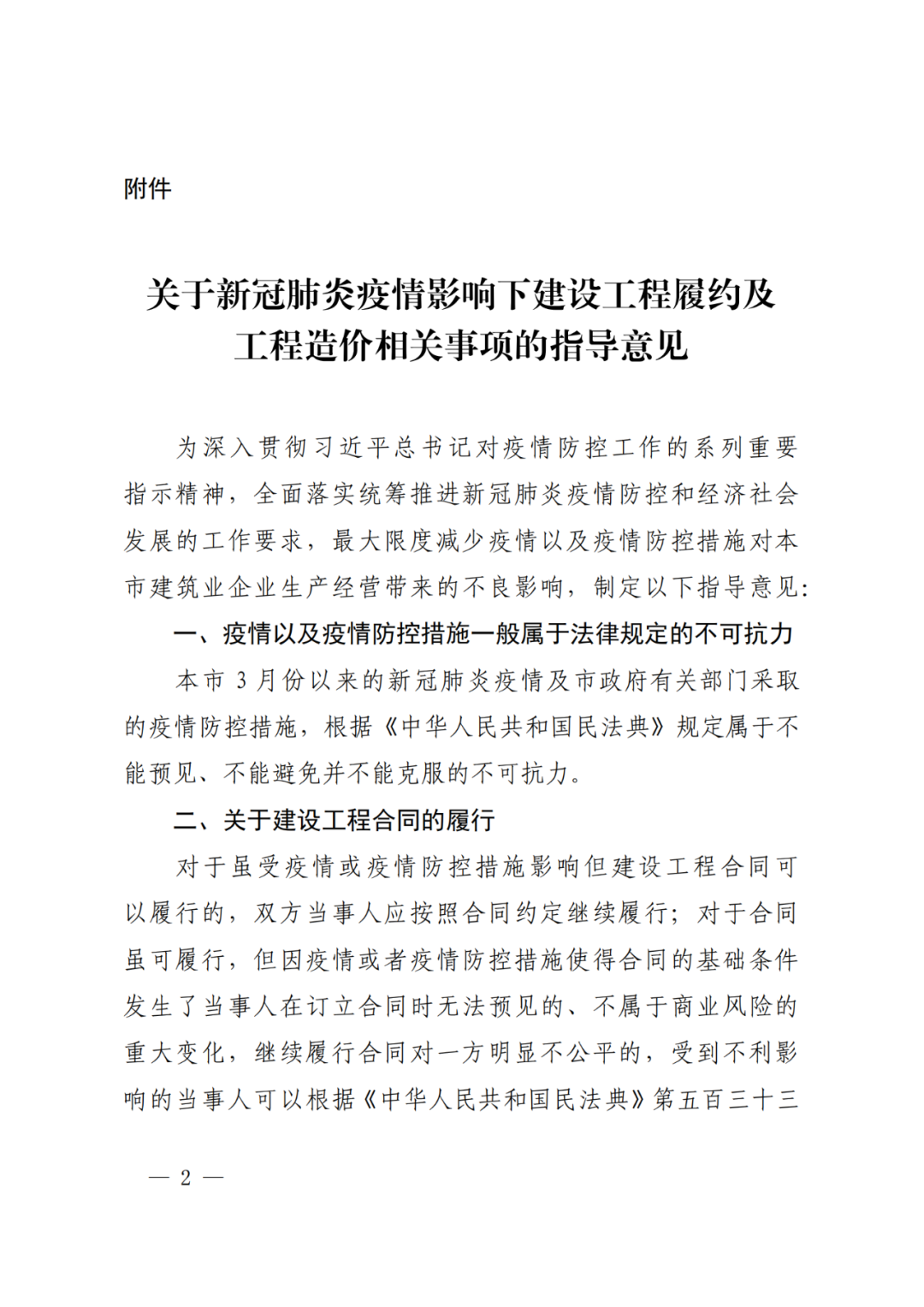 上海市住房和城鄉(xiāng)建設管理委員會關于印發(fā) 《關于新冠肺炎疫情影響下建設工程履約及工程造價相關事項的指導意見》的通知
