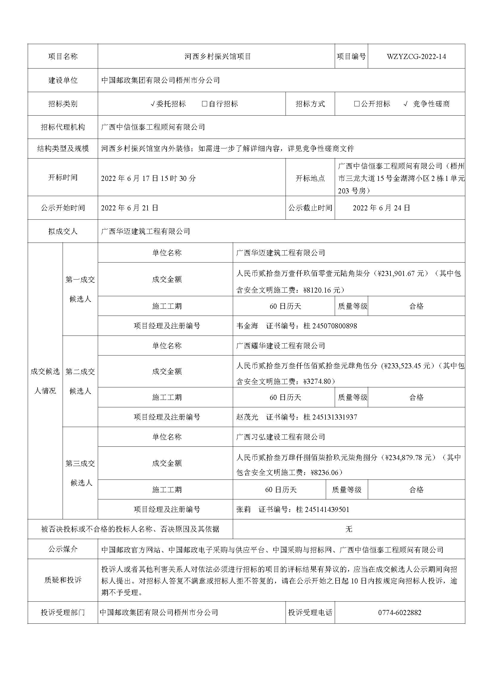 河西鄉(xiāng)村振興館項目成交候選人公示