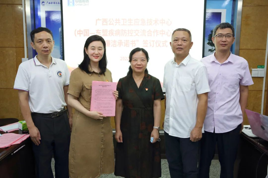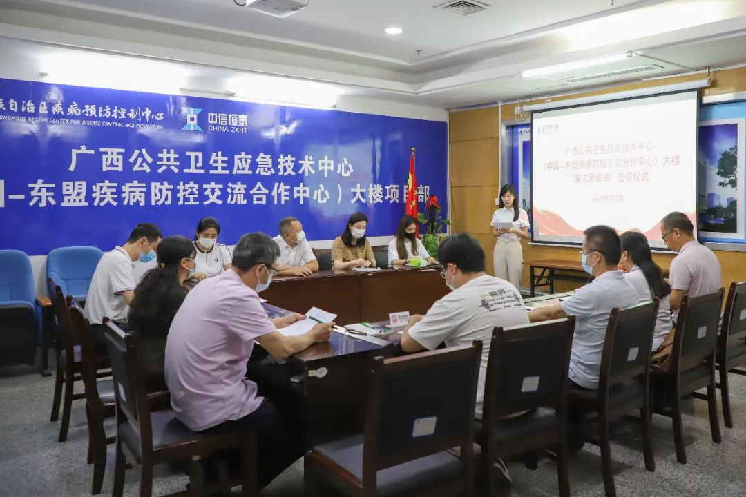 6月22日,為進(jìn)一步強(qiáng)化廉政建設(shè),提高廉潔自律意識(shí),預(yù)防崗位職務(wù)犯罪,從思想源頭上杜絕違規(guī)違紀(jì)事件的發(fā)生,中信恒泰集團(tuán)黨支部聯(lián)合紀(jì)檢監(jiān)察室開展“喜迎二十大 廉潔正氣揚(yáng)”的廉潔承諾書項(xiàng)目現(xiàn)場簽訂活動(dòng),廣西公共衛(wèi)生應(yīng)急技術(shù)中心(中國-東盟疾病防控交流合作中心)大樓項(xiàng)目為首批“廉潔承諾書”簽訂項(xiàng)目。自治區(qū)疾控中心主任、黨委副書記林玫、后勤服務(wù)保障科科長盧文、新建大樓項(xiàng)目技術(shù)負(fù)責(zé)人蔣世泉,中信恒泰集團(tuán)董事長陸霖、黨支部書記甘江幸、中信恒泰區(qū)疾控中心全過程咨詢項(xiàng)目組人員等參加了儀式。