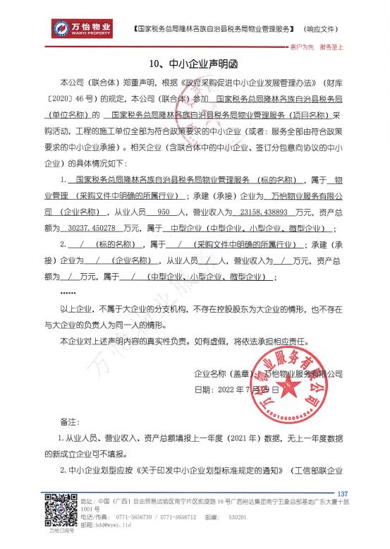 國(guó)家稅務(wù)總局隆林各族自治縣稅務(wù)局物業(yè)管理服務(wù)一項(xiàng),服務(wù)范圍、服務(wù)要求、服務(wù)標(biāo)準(zhǔn)詳見(jiàn)附件。