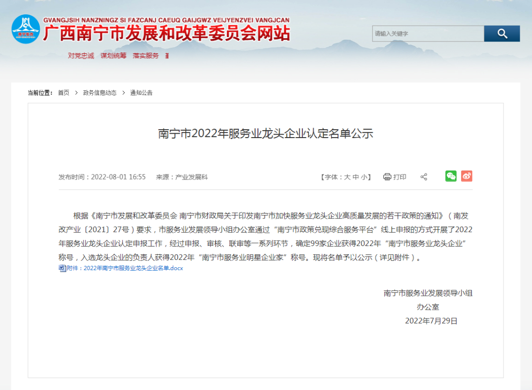喜訊 | 中信恒泰獲2022年“南寧市服務(wù)業(yè)龍頭企業(yè)”稱號