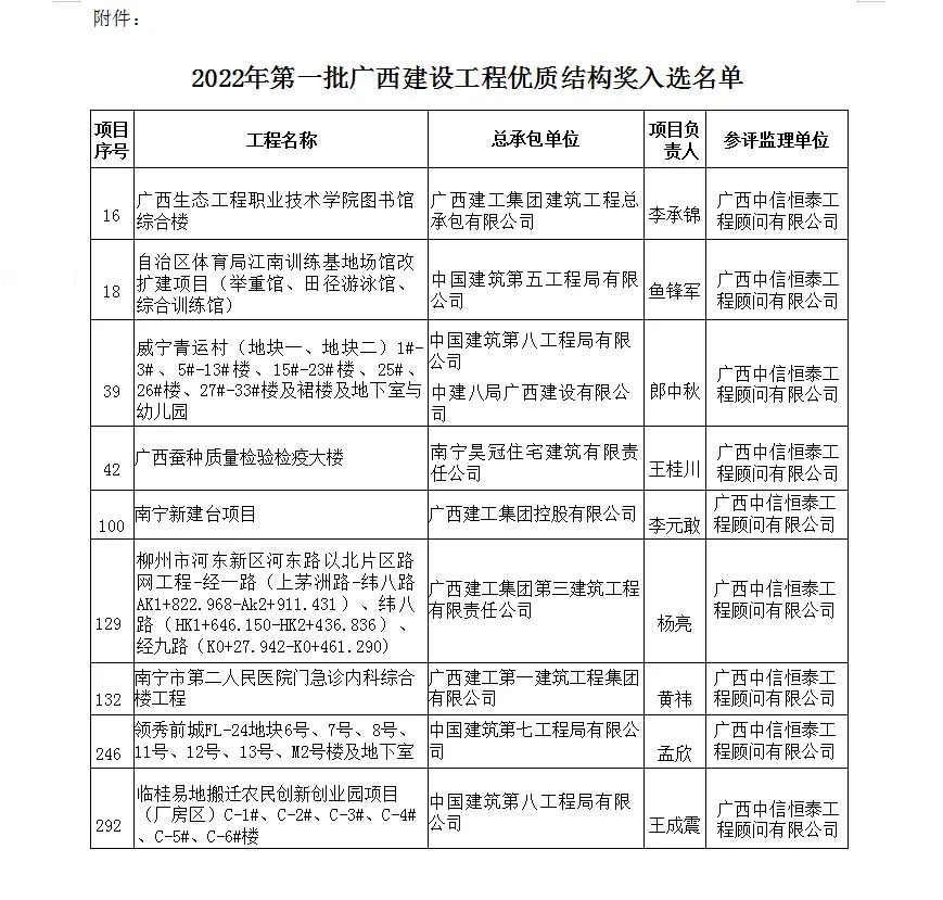 喜訊 | 中信恒泰多個項目榮獲2022年第一批廣西壯族自治區(qū)建設(shè)工程優(yōu)質(zhì)結(jié)構(gòu)獎