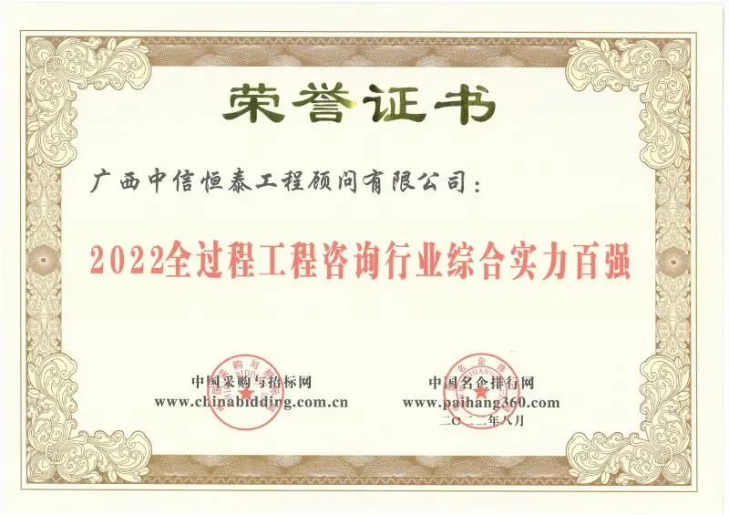 喜訊 | 中信恒泰榮膺2022全過程工程咨詢行業(yè)綜合實力百強、2022PPP咨詢行業(yè)綜合實力50強等多項榮譽