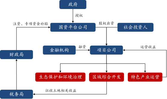 除規(guī)范的PPP模式外,在已落地的項(xiàng)目中,EOD項(xiàng)目更多地采取了“投資人+EPC”的模式,也稱作“股權(quán)合作型EPC”模式,即EPC總承包方(社會(huì)投資人)與政府股權(quán)合作合資組建項(xiàng)目公司,政府按規(guī)定通過直接投資、資本金注入、投資補(bǔ)助等方式予以實(shí)施。項(xiàng)目公司作為投資開發(fā)主體,承擔(dān)項(xiàng)目的資金籌措、勘察設(shè)計(jì)、投資、建設(shè)、產(chǎn)業(yè)導(dǎo)入、運(yùn)營服務(wù)等工作,并獲取投資運(yùn)營收益。預(yù)計(jì)未來該模式將成為EOD項(xiàng)目的主流模式。