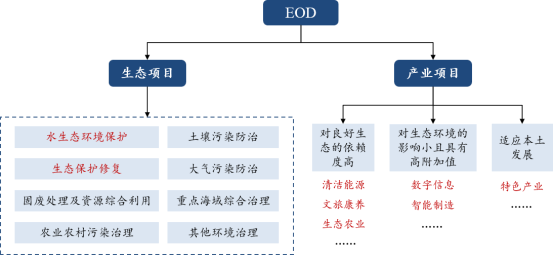 EOD項(xiàng)目必須包含生態(tài)項(xiàng)目和產(chǎn)業(yè)項(xiàng)目兩大類別,如何真正融合好生態(tài)項(xiàng)目和產(chǎn)業(yè)項(xiàng)目,做到“肥瘦搭配”是項(xiàng)目成功的關(guān)鍵。那么EOD項(xiàng)目主要涉及哪些生態(tài)治理領(lǐng)域,又主要通過哪些產(chǎn)業(yè)來反哺?