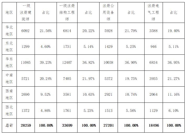 各大區(qū)主要注冊(cè)執(zhí)業(yè)師數(shù)據(jù)見下表:
