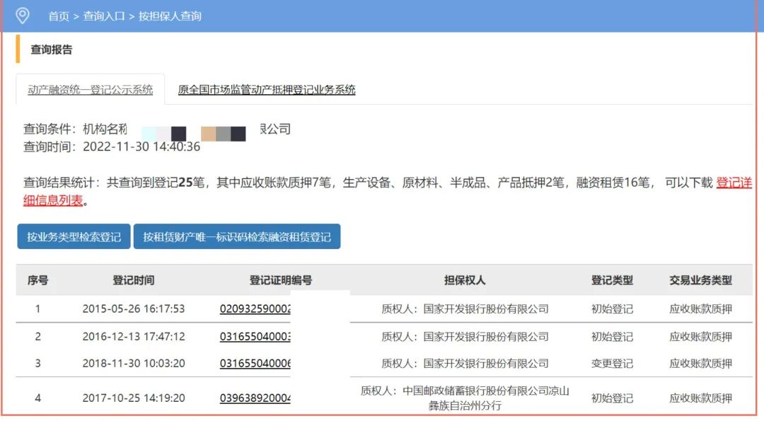 自2021年起,《國(guó)務(wù)院關(guān)于實(shí)施動(dòng)產(chǎn)和權(quán)利擔(dān)保統(tǒng)一登記的決定》第二條中納入統(tǒng)一登記范圍的動(dòng)產(chǎn)和權(quán)利擔(dān)保,均在征信中心動(dòng)產(chǎn)融資統(tǒng)一登記公示系統(tǒng)辦理。通過系統(tǒng)可以查詢(擬)交易對(duì)象目前的動(dòng)產(chǎn)和權(quán)利擔(dān)保融資情況,但應(yīng)當(dāng)特別注意的是,該登記由當(dāng)事人自主辦理,登記機(jī)構(gòu)不進(jìn)行實(shí)質(zhì)審查。