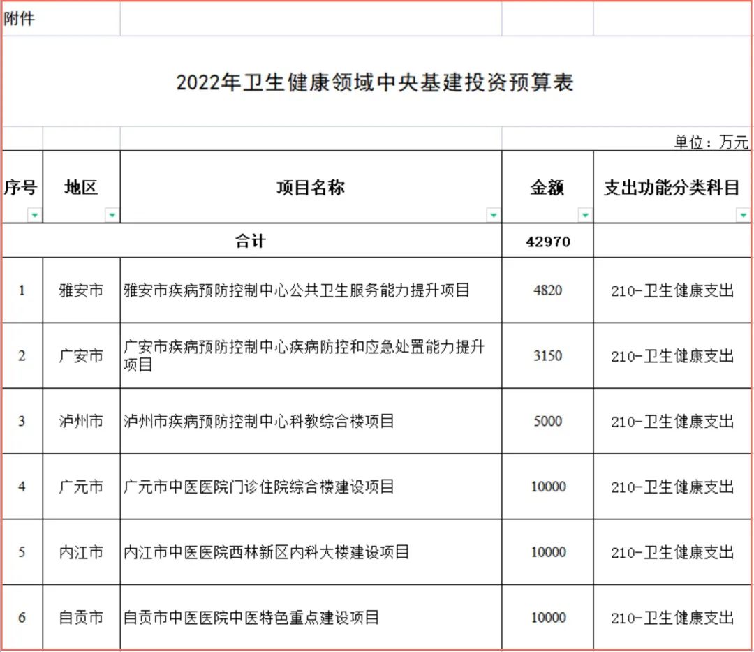 圖2為四川省下達(dá)的其中一批衛(wèi)生健康領(lǐng)域中央基建投資預(yù)算,披露了項(xiàng)目名稱和預(yù)算投資金額。