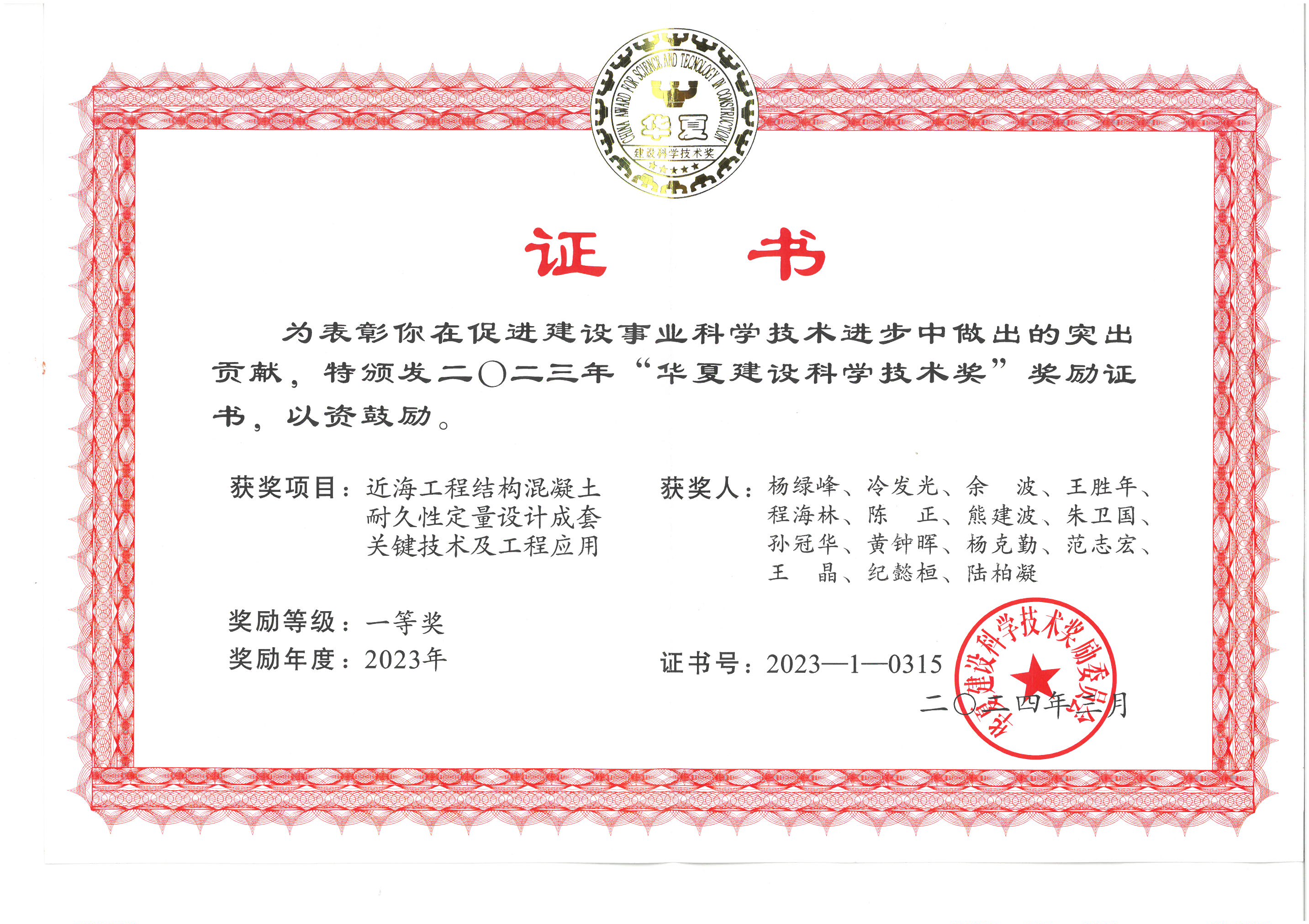 “2023年度華夏建設(shè)科學(xué)技術(shù)獎”一等獎