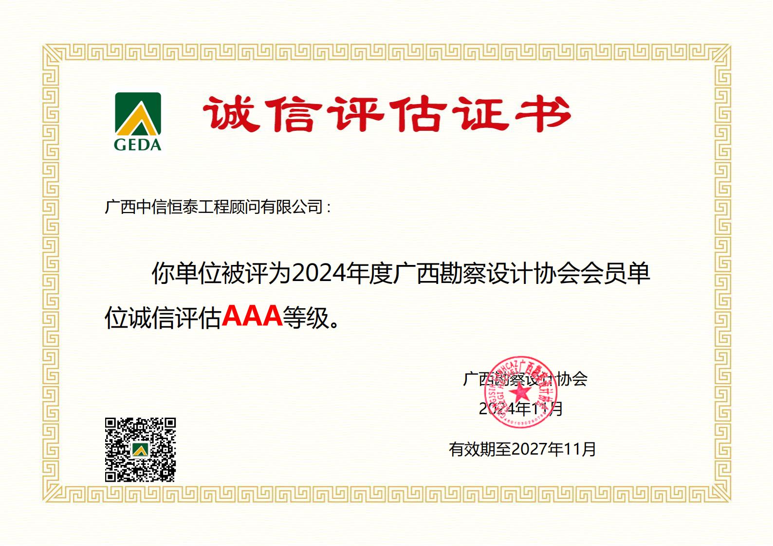 2024年度廣西勘察設(shè)計協(xié)會會員單位誠信評估AAA級
